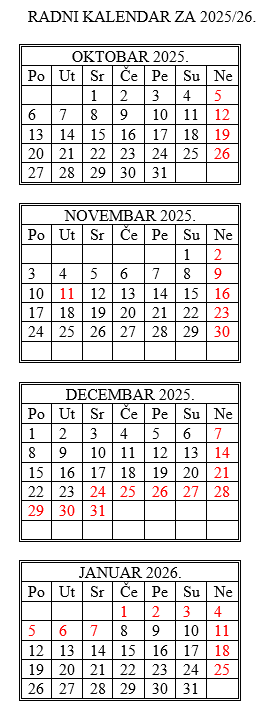 zimski semestar Od 1. oktobra 2025. do 23. januara 2026. Neradni dani